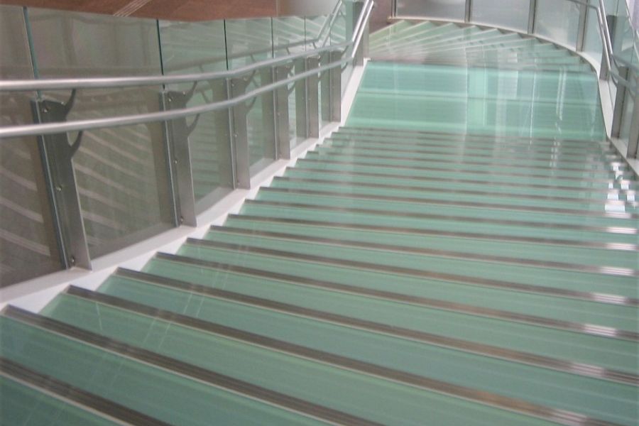 当社のスリップガードは、割れても脱落しない安全ガラス仕様です。また、表面に滑り止め加工を施しており、耐滑り性にも安全です。