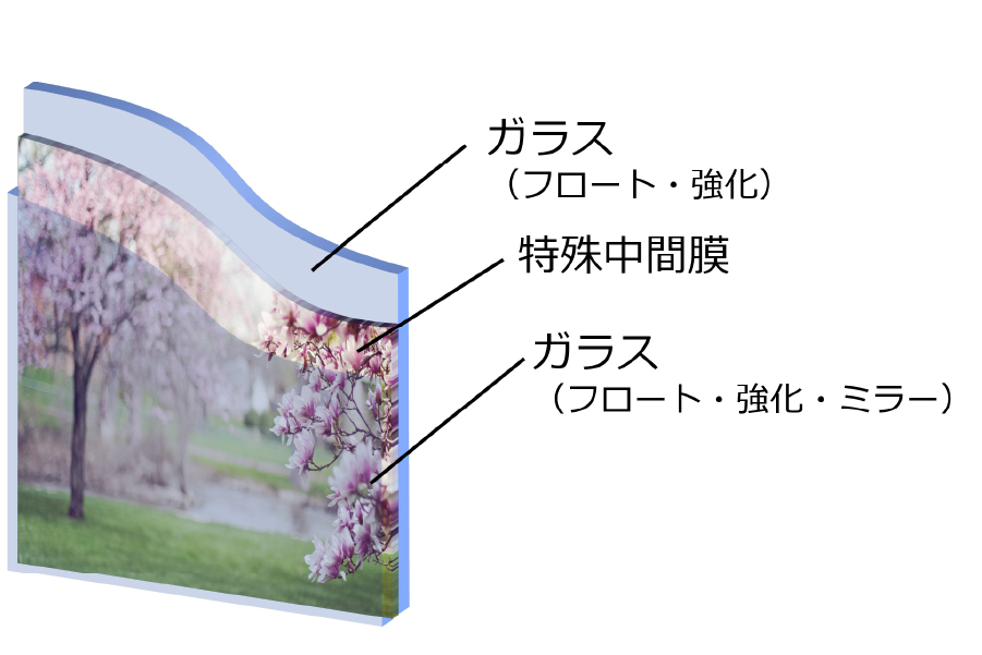 SafetyBecause of the laminated glass structure, scattering and dropping of fragment is rare even if it breaks.