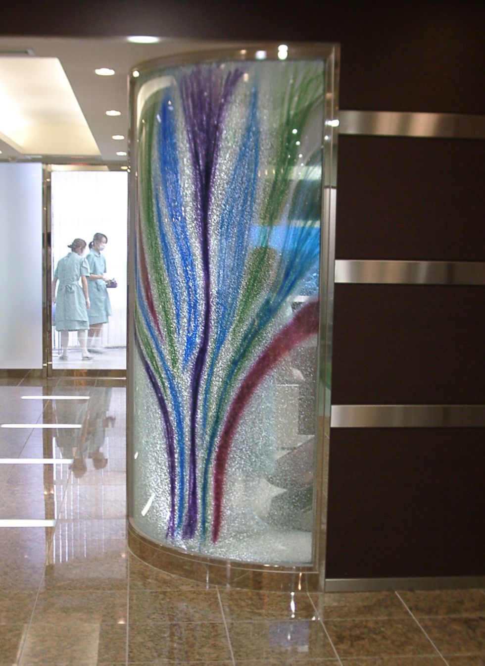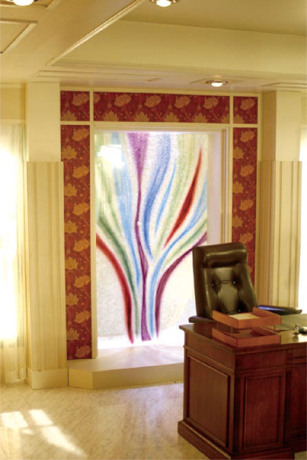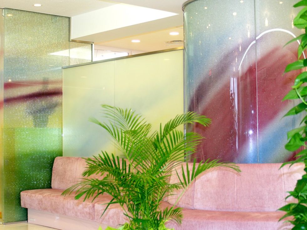 弊社ベラミのデザイン性とクラックガラスの光の乱反射機能を融合した、オリジナル商品。モニュメントからパーテーションまで、使用場所を選ばない優れたガラスです。