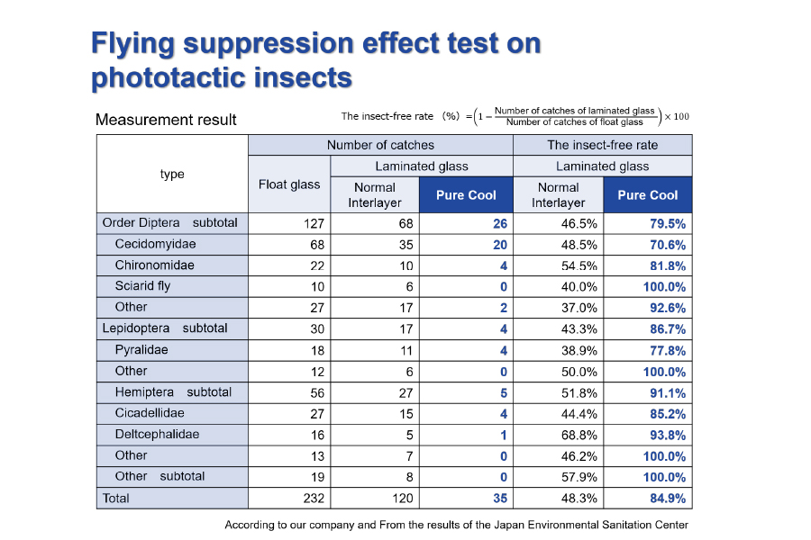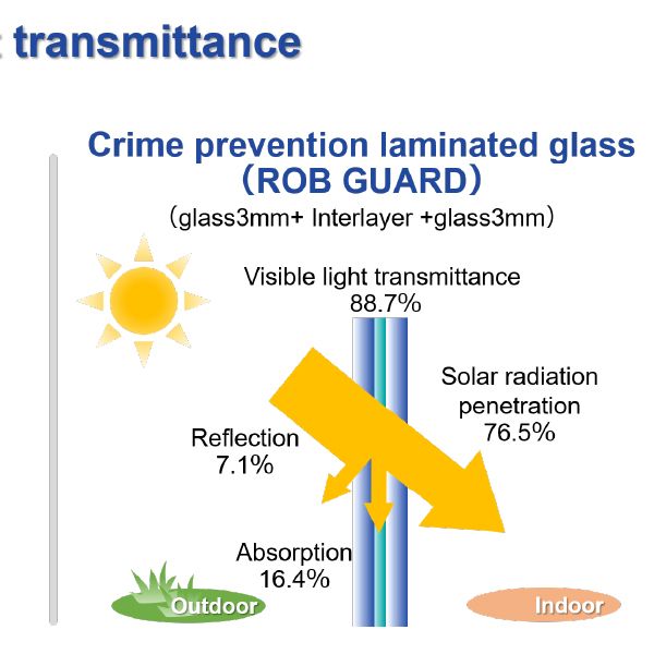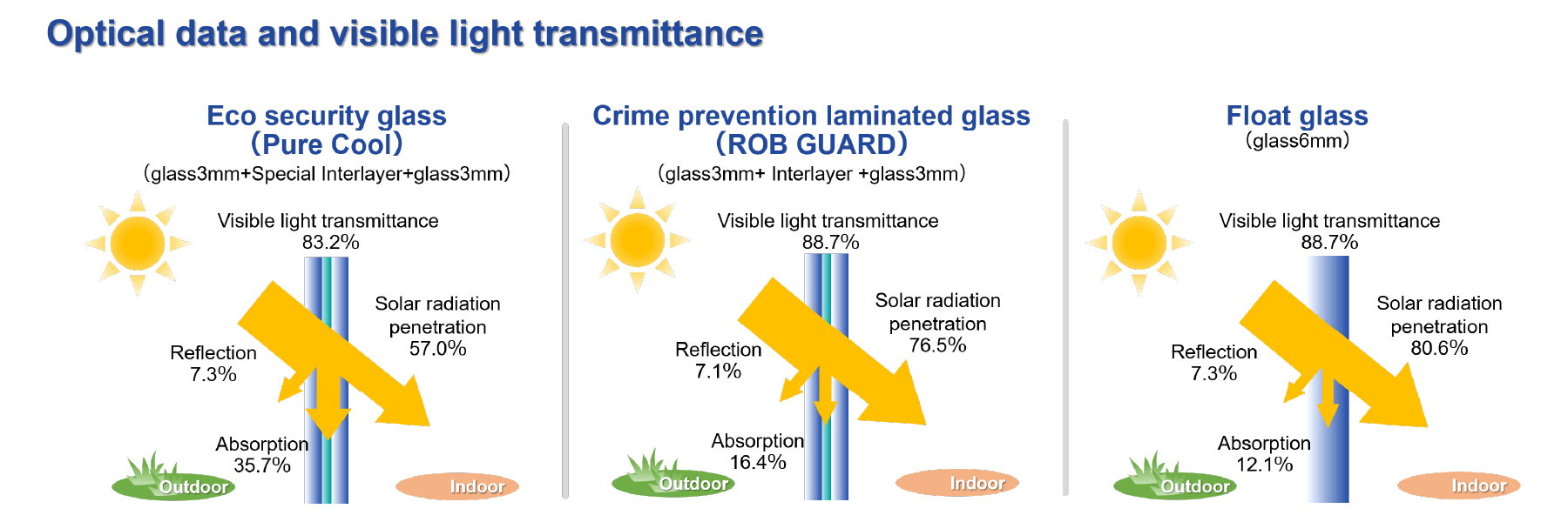 In addition to the conventional laminated glass function, ultraviolet cutting function and security function, a new infrared (IR) cutting function was added.