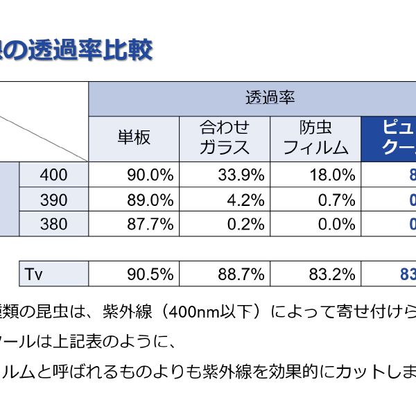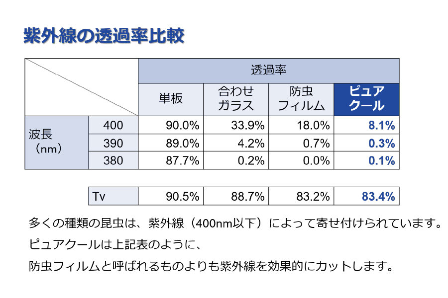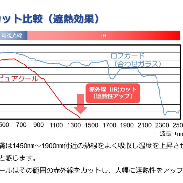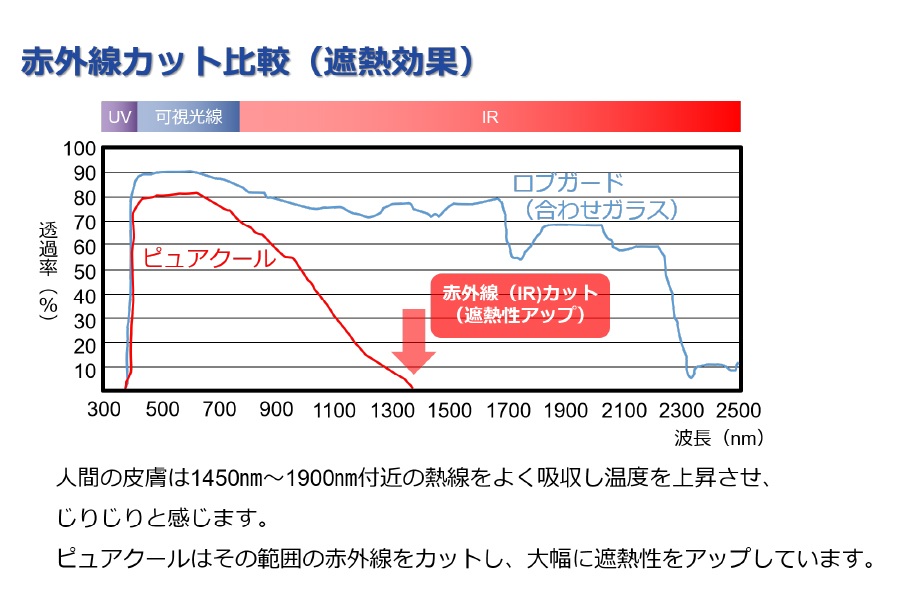 ピュアクールの特徴・赤外線(IR)、紫外線を効果的にカットします。