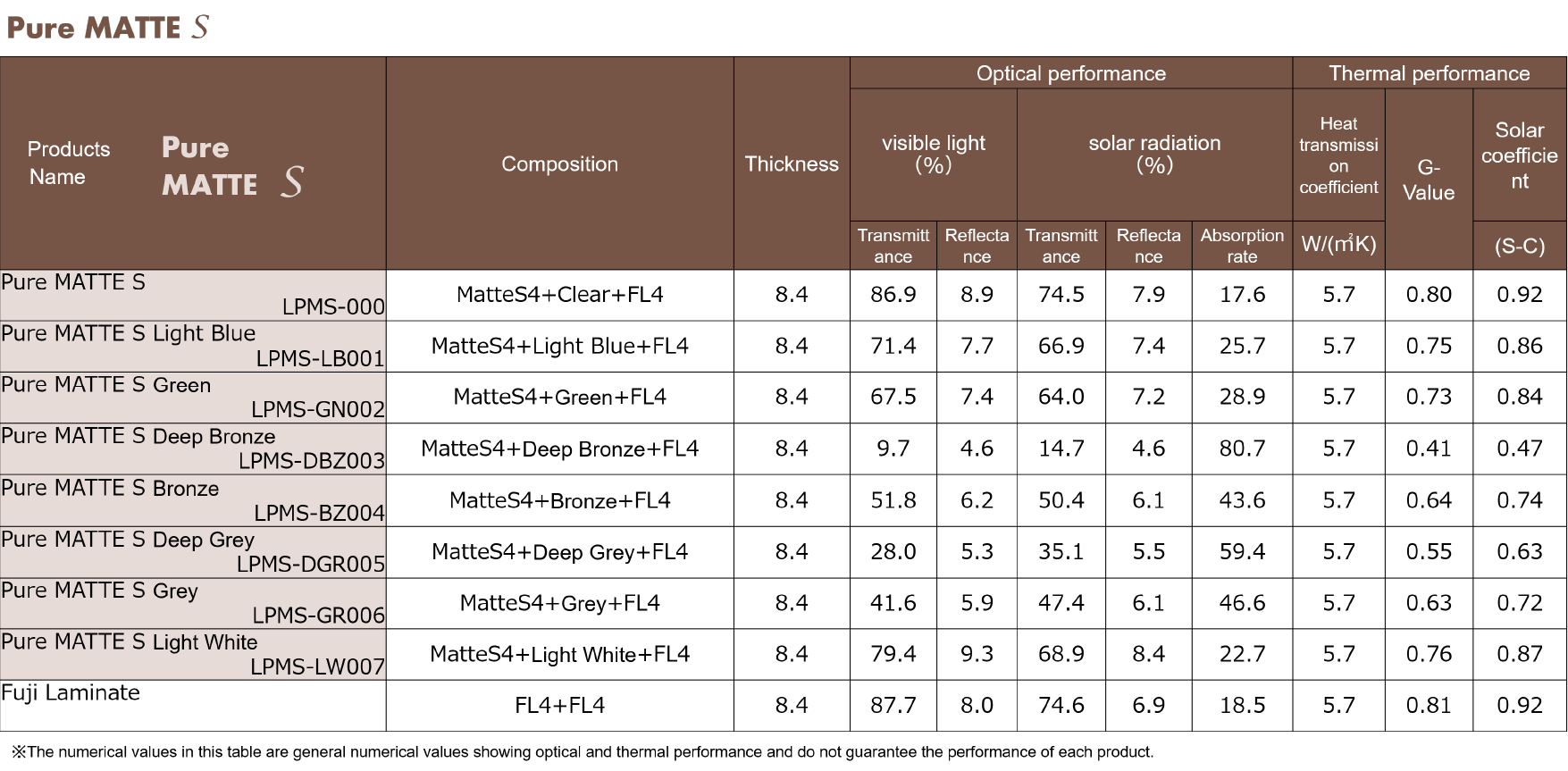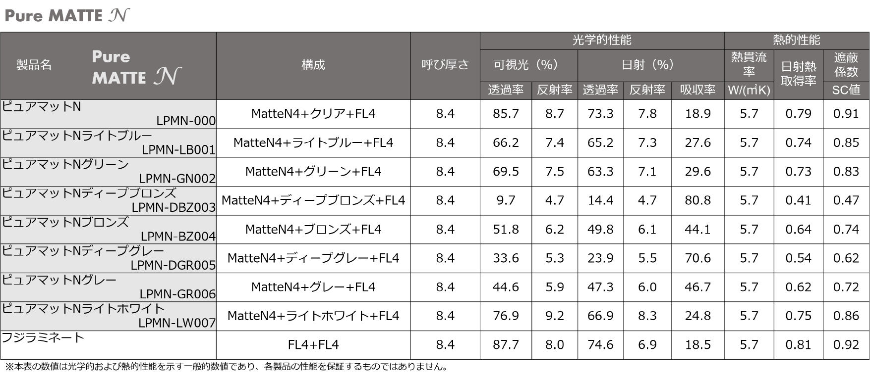 クリア・ライトホワイト・ライトブルー・グリーン グレー・ディープグレー・ブロンズ・ディープブロンズ