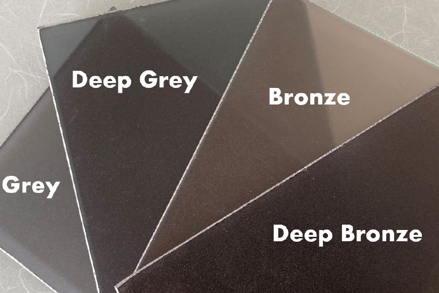 Clear, light white, light blue, green grey, deep grey, bronze, deep bronze