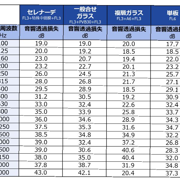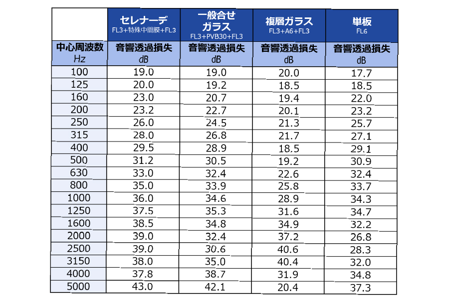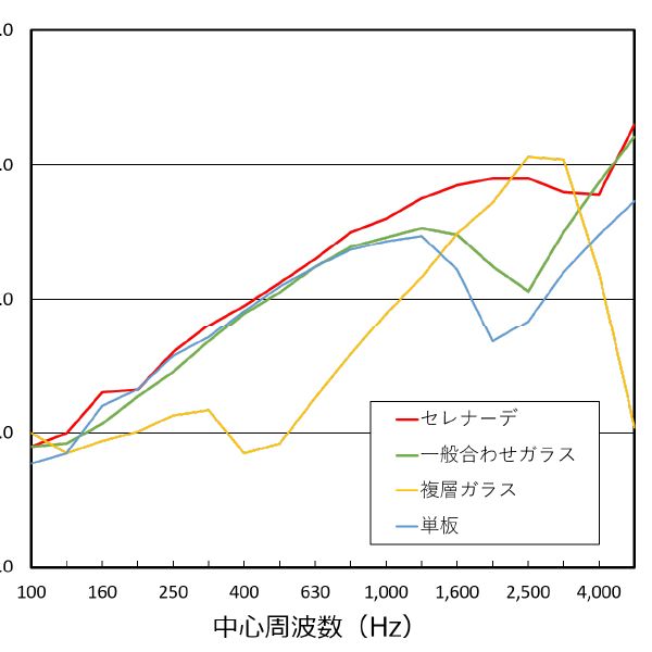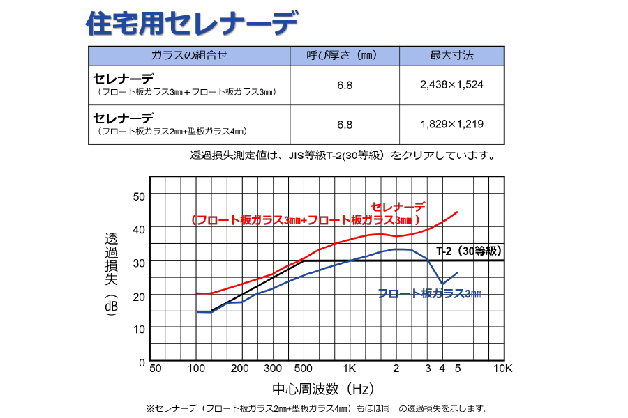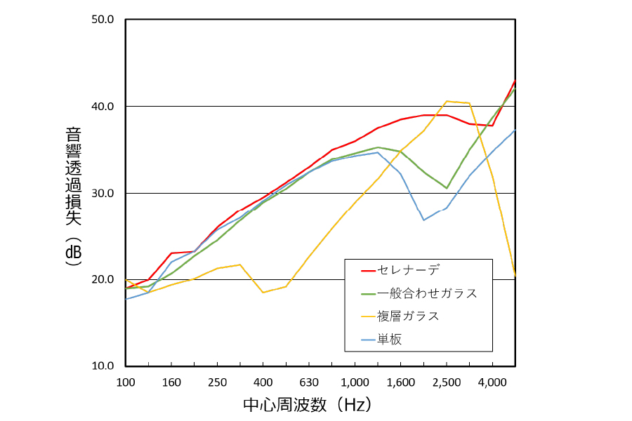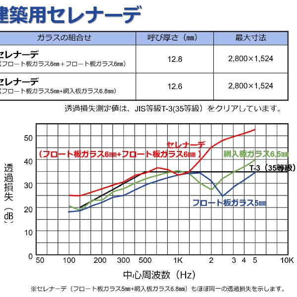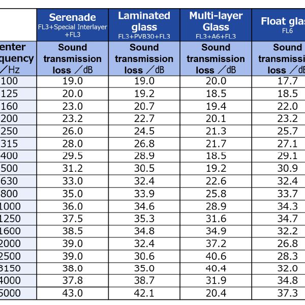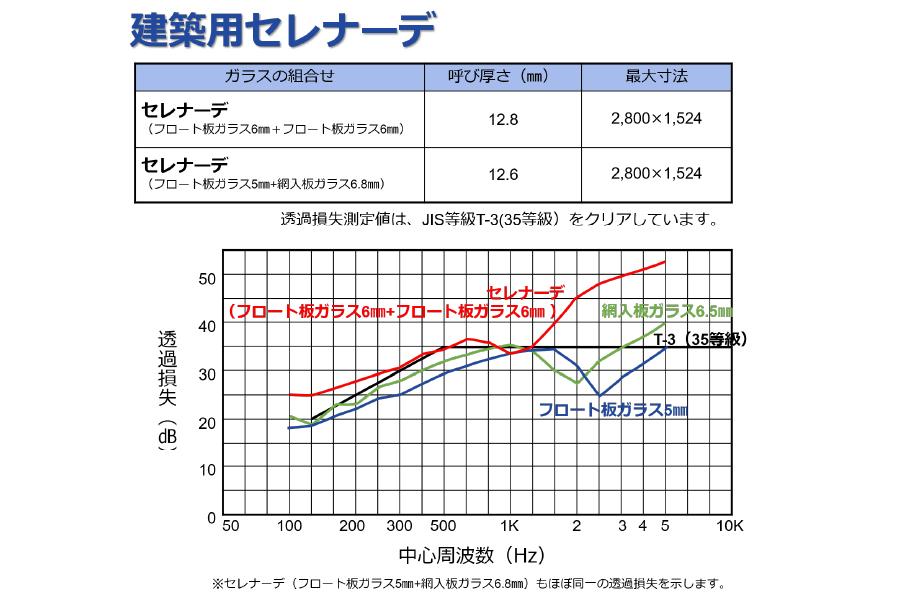セレナーデは、フロートガラスを特殊な中間膜によって接着し、全音域にわたって高い遮音性を持つ防音合わせガラスです。