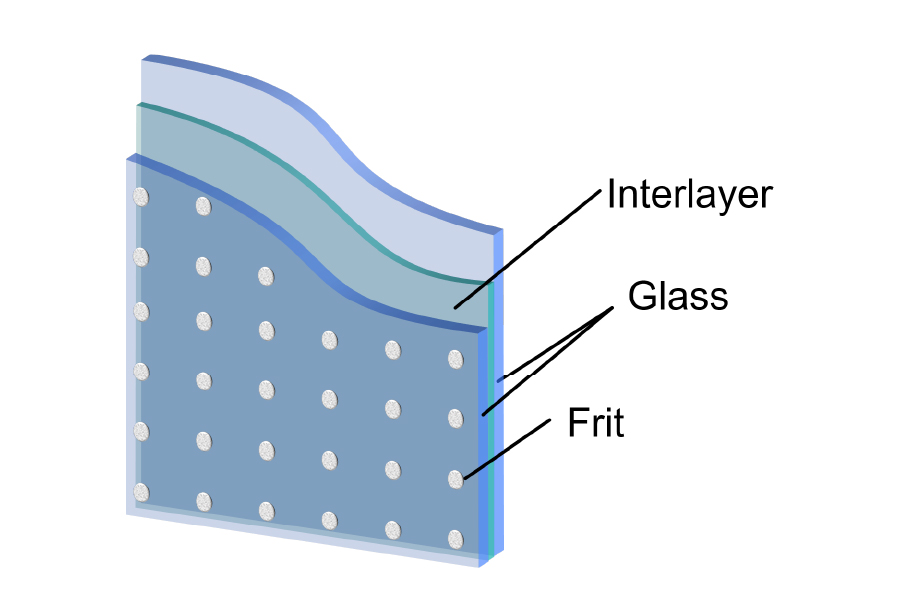 滑りにくい板ガラスの上に滑り止めフリットを高温で焼き付け。従来のものに比べてフリットが剥がれにくく、フリット自体の色や形の変化も少なくなりました。