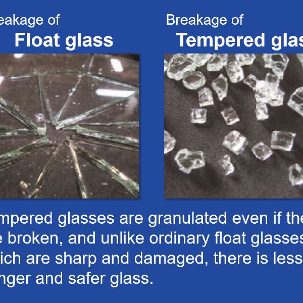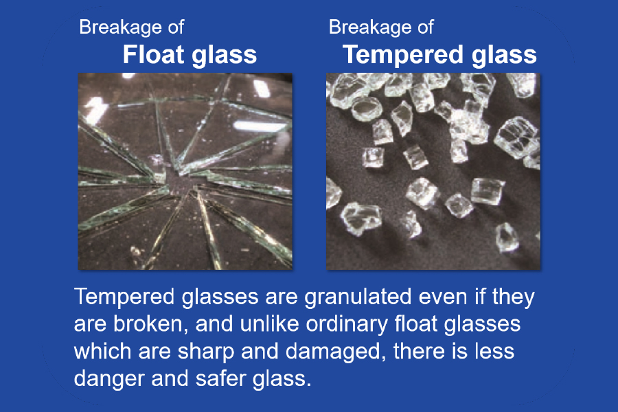 SafetyEven if it breaks, fragments will become fine granules, and sharp debris like normal glass will not occur. For this reason it can prevent large injuries caused by debris.